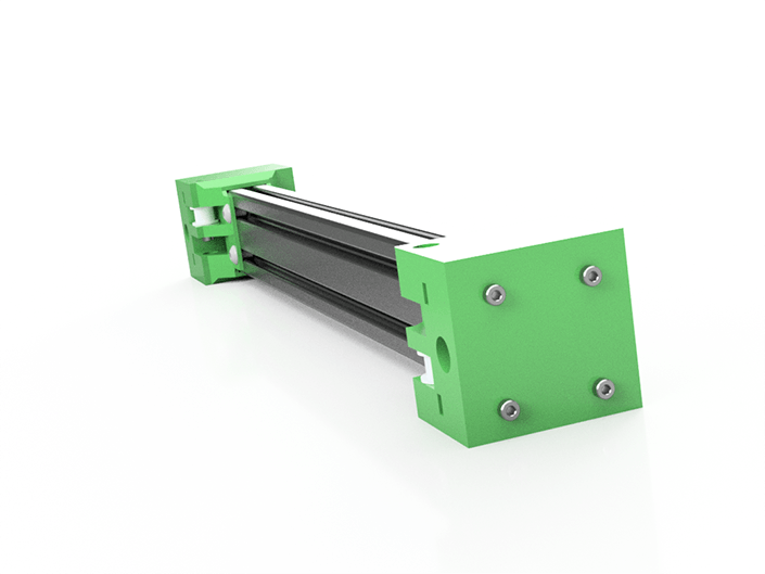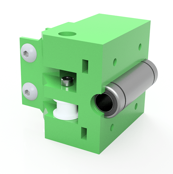This is essentially a first version of my new X carriage. It’s going in the garbage, and I’ll be completely redesigning it, in the next few weeks, when I can find a bit of time. It uses 4 V-Wheels, two of which will adjustable with eccentric nuts.