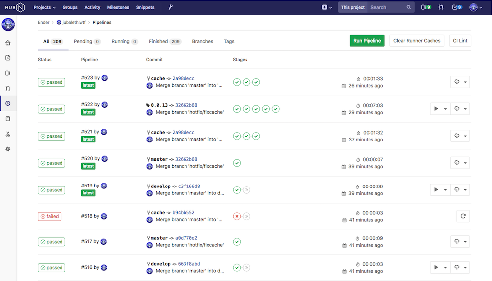 There are a number of ways that one can deploy a website; a completely automated deployment was my goal, and this is how I achieved it. I have two separate hosting solutions for this project, one for staging, and one for production. Staging, I host at home, with nginx, and production is hosted on S3. The tools I have chosen are GitLab CI and Deployer for PHP. Gitlab CI GitLab CI is a really nice addition to GitLab.